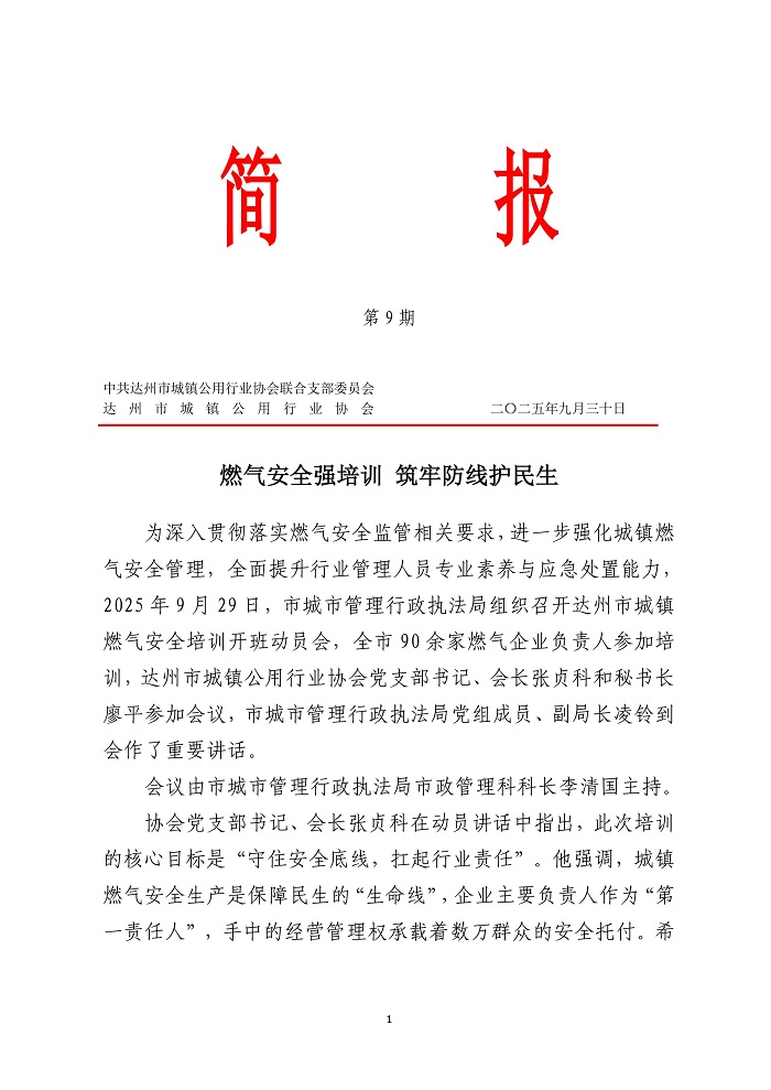 達州市城鎮(zhèn)公用行業(yè)協(xié)會2025年第九期簡
